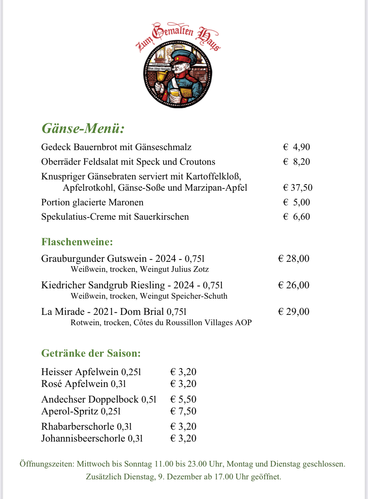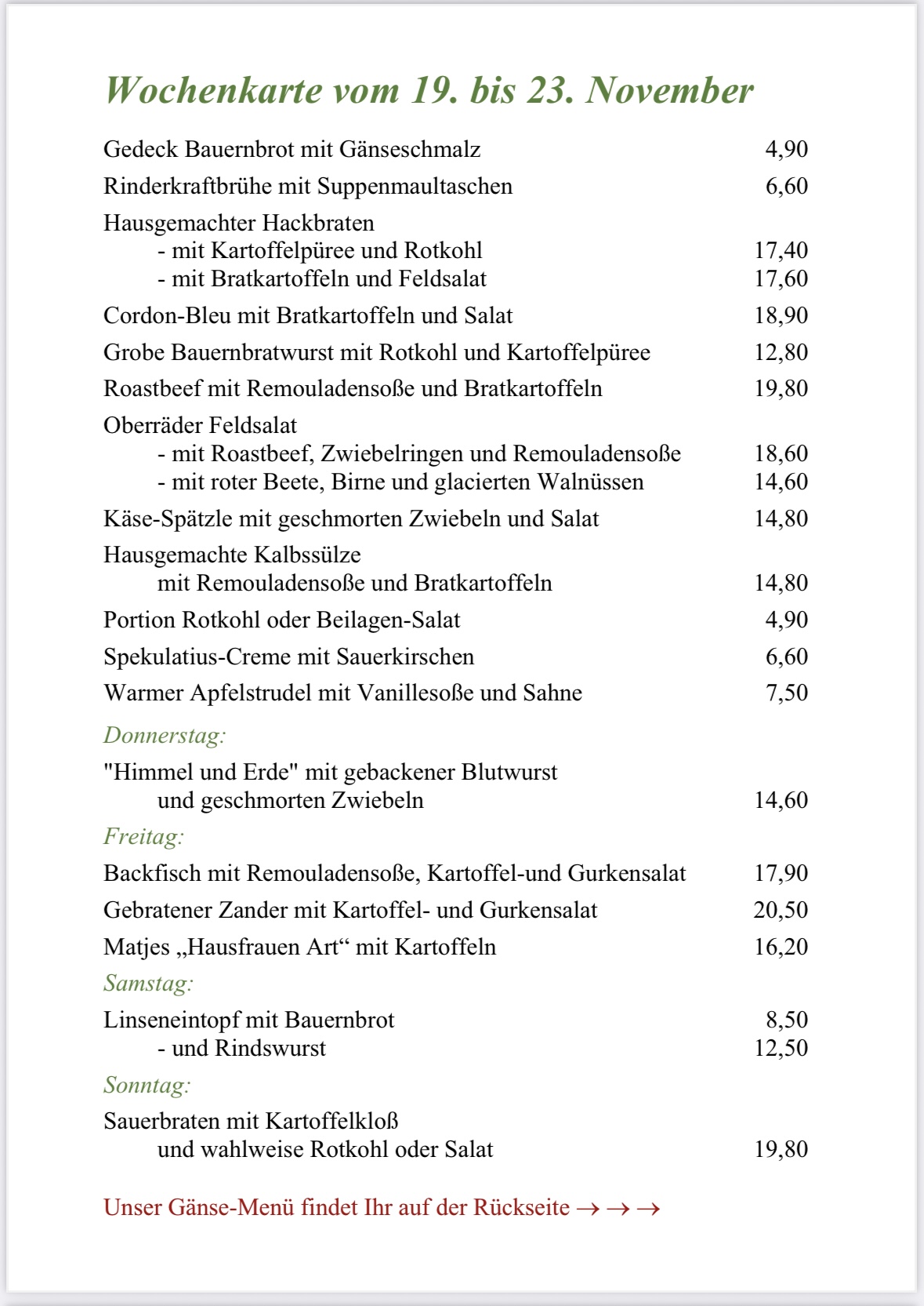 Von Mitte November an gibt es bei uns ein Gänse-Menü !