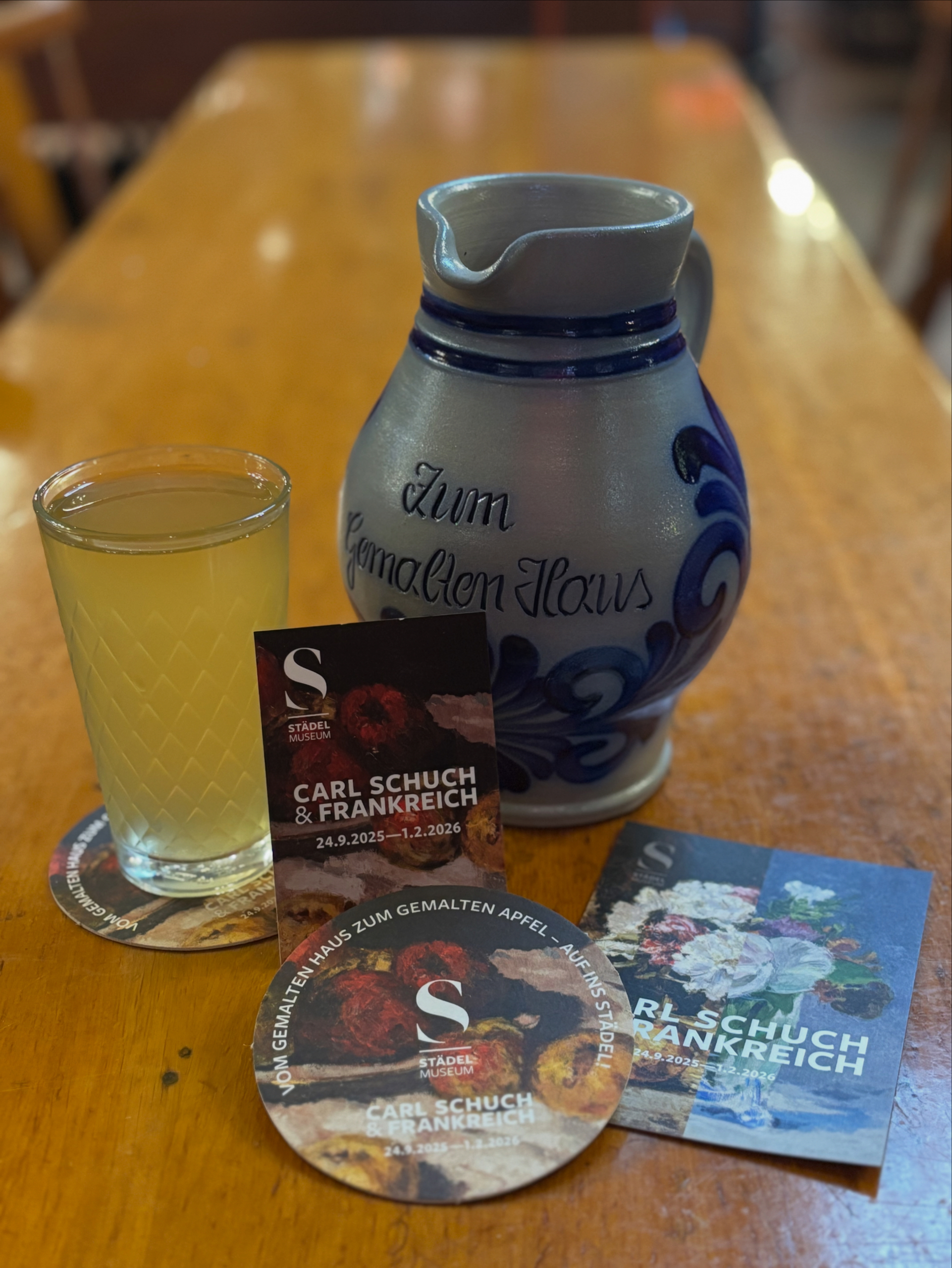 Vom Gemalten Haus zum gemalten Apfel – derzeit haben wir eine Aktion mit dem Städel-Museum: Mit jeder Rechnung gibt es pro Person ein 2 € Rabatt-Kärtchen für die Sonderausstellung „Carl Schuch“. Solange der Vorrat reicht.