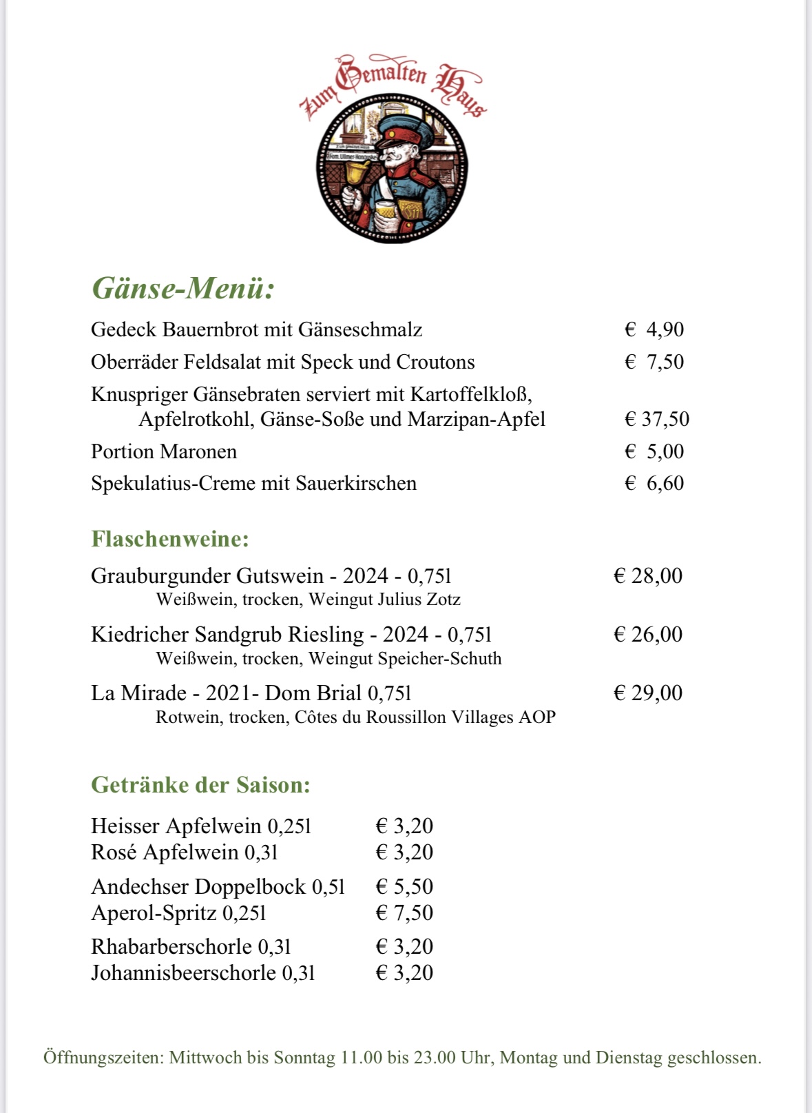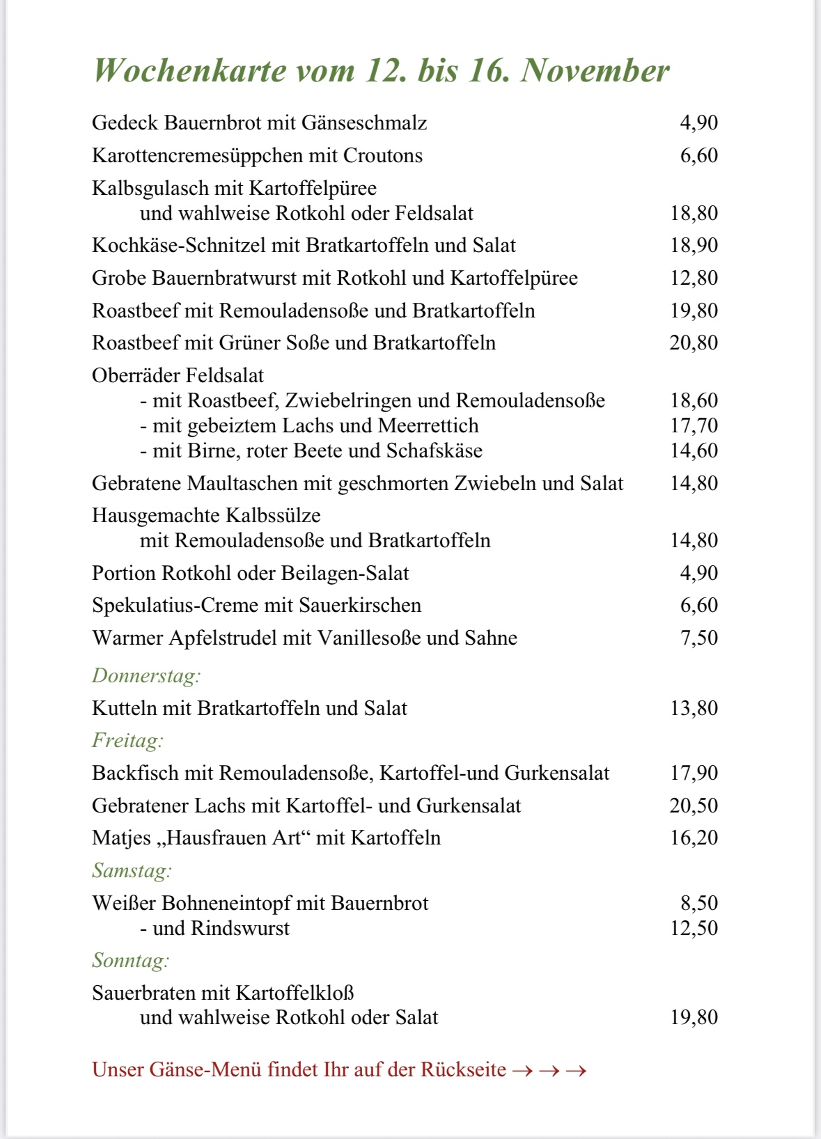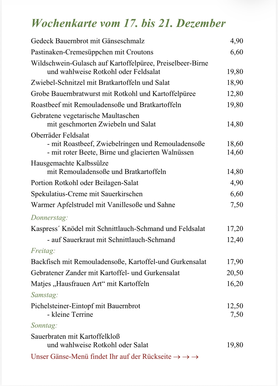 Von Mitte November an gibt es bei uns ein Gänse-Menü !