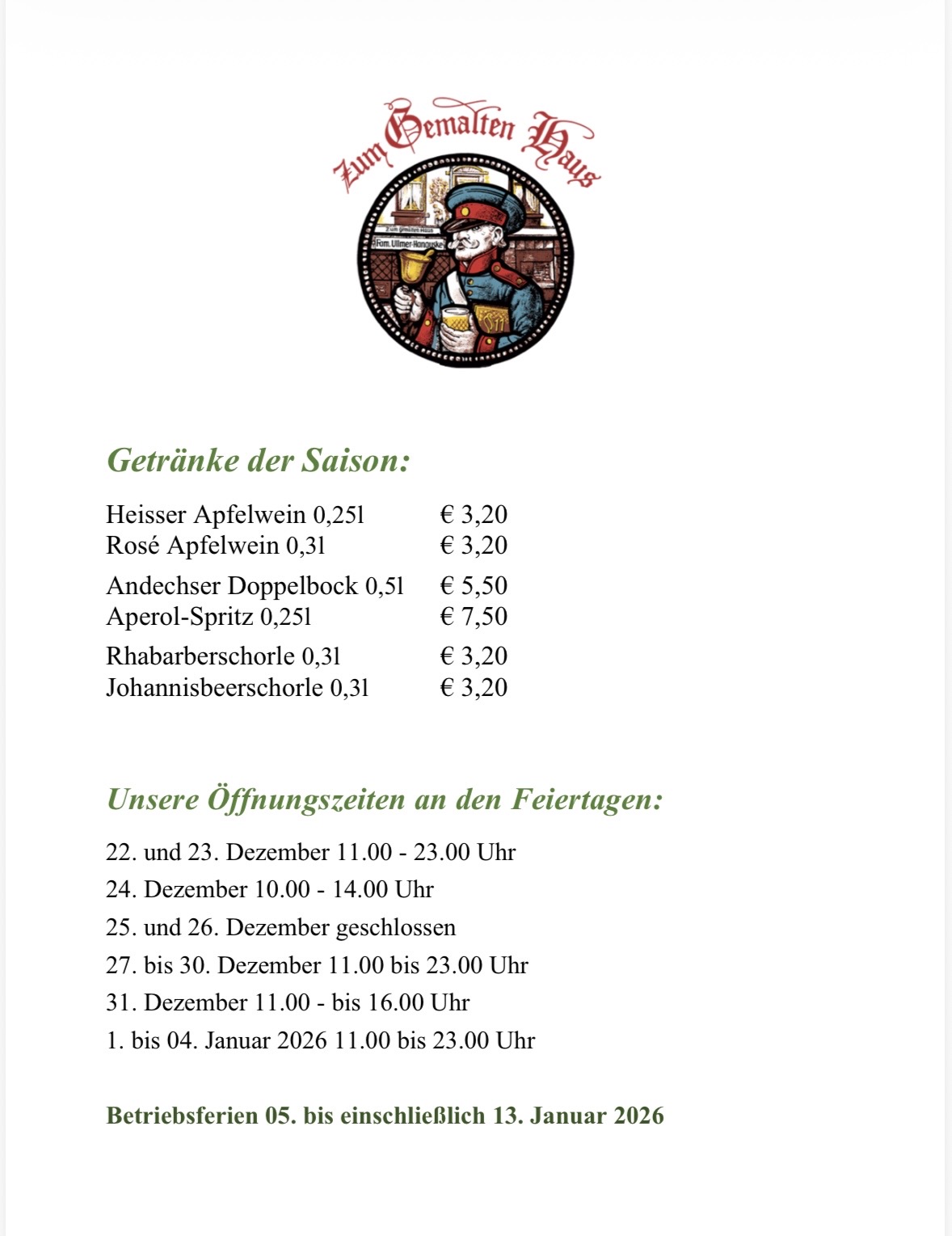 Viele kommen ein ganzes Leben lang her, manche Familien über Generationen. Ein Zuhause in guten und in schlechten Zeiten. Durch den Wechsel der Zeiten hindurch ist sich das Gemalte Haus immer treu geblieben, und die Gäste danken es. Wer die Bilder auf dieser Website betrachtet, mag eine Idee davon bekommen, wie viel Geschichte, wie viel Erlebtes, wie viel Erinnerung und Kontinuität, aber auch wie viel Zukunft im Gemalten Haus mit seiner Belegschaft und seinen Stammgästen steckt. Ein Leben ohne das Gemalte Haus kann man sich eigentlich überhaupt nicht vorstellen.