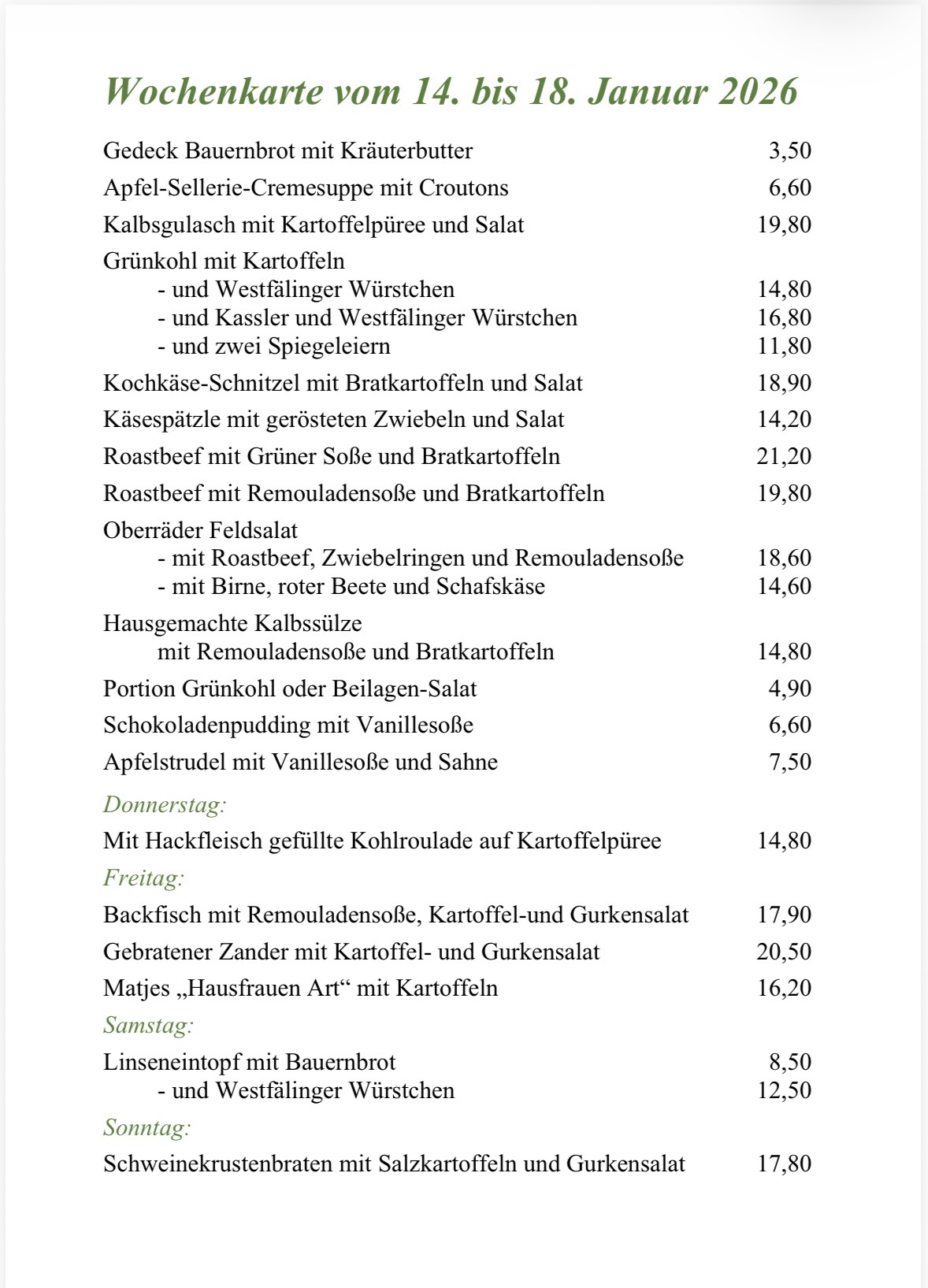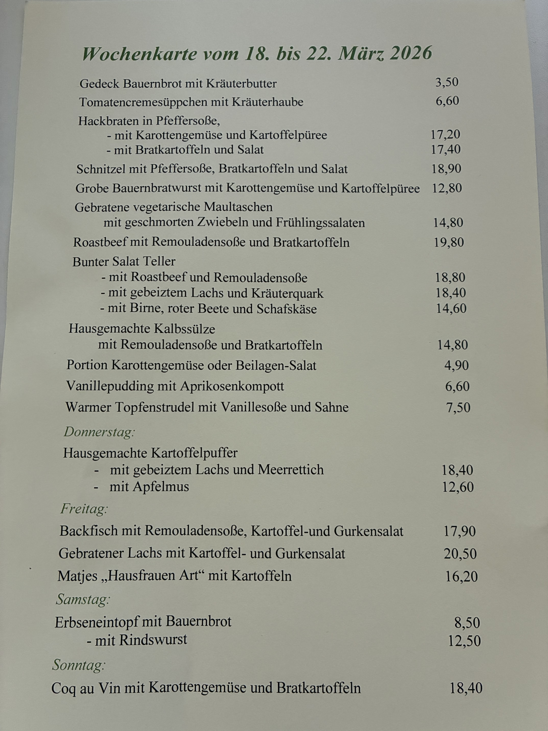 Mittwoch, Donnerstag und Sonntag: